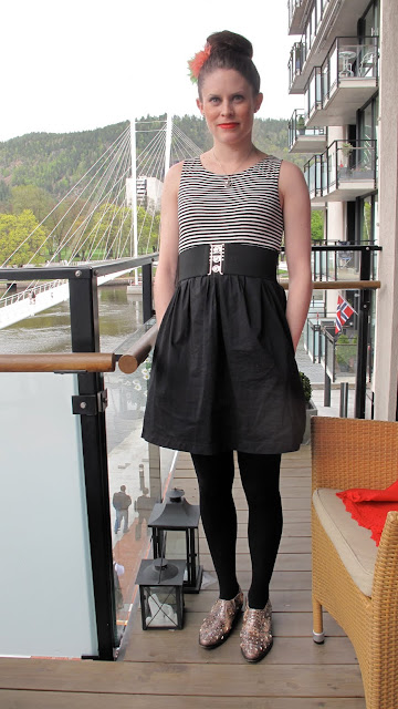 Dress F21, shoes Jimmy Choo x H&M, flowers F21, leggings Lindex.